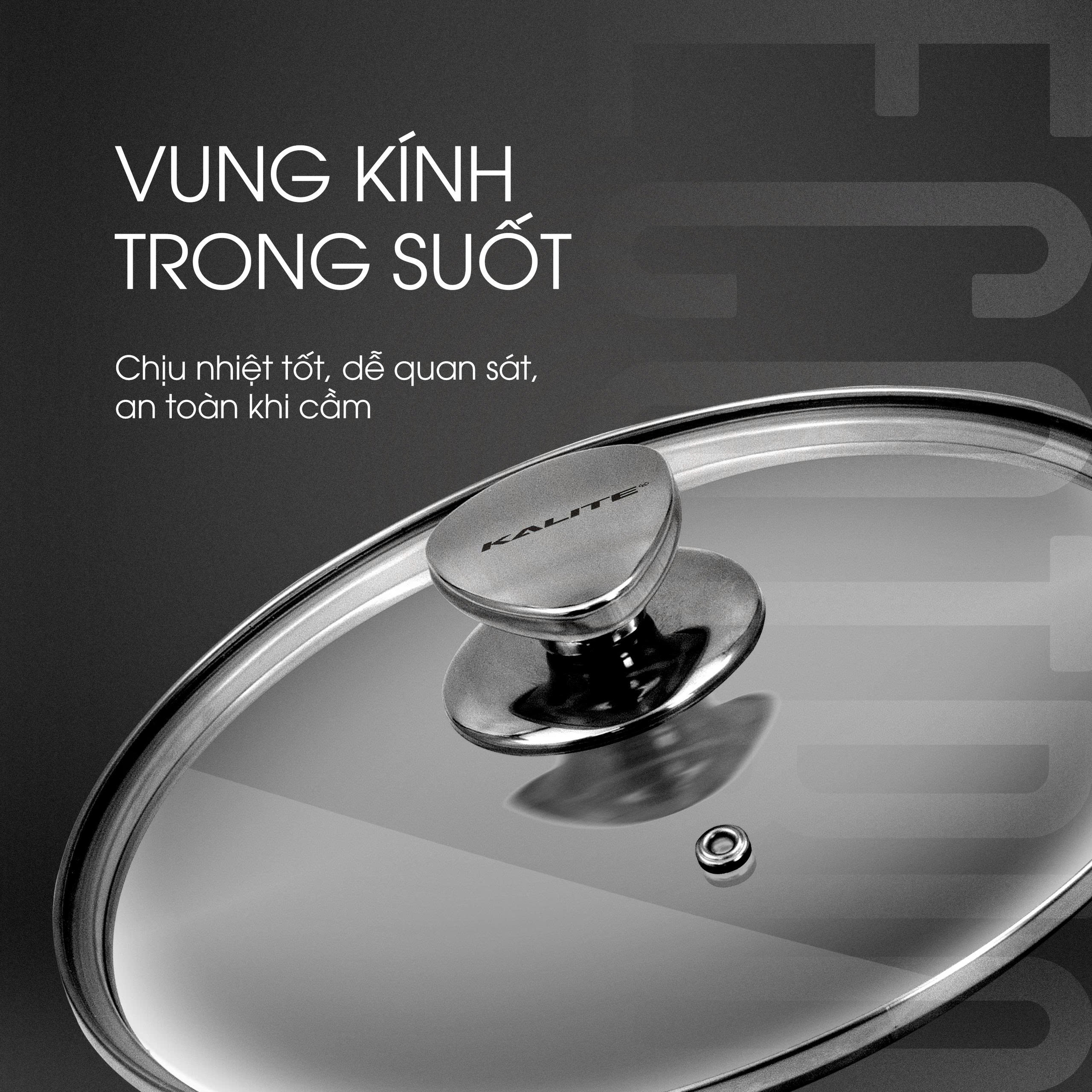 Thiết kế vung kính của Kalite Eco Trio được làm trong suốt, chống mờ hơi nước cho phép dễ dàng quan sát món ăn mà không cần mở nắp, giữ trọn hương vị và dinh dưỡng. Thêm vào đó, vung kính được làm từ kính cường lực cao cấp chịu nhiệt và chịu va đập tốt, giúp bạn an tâm khi nấu ở nhiệt độ cao.