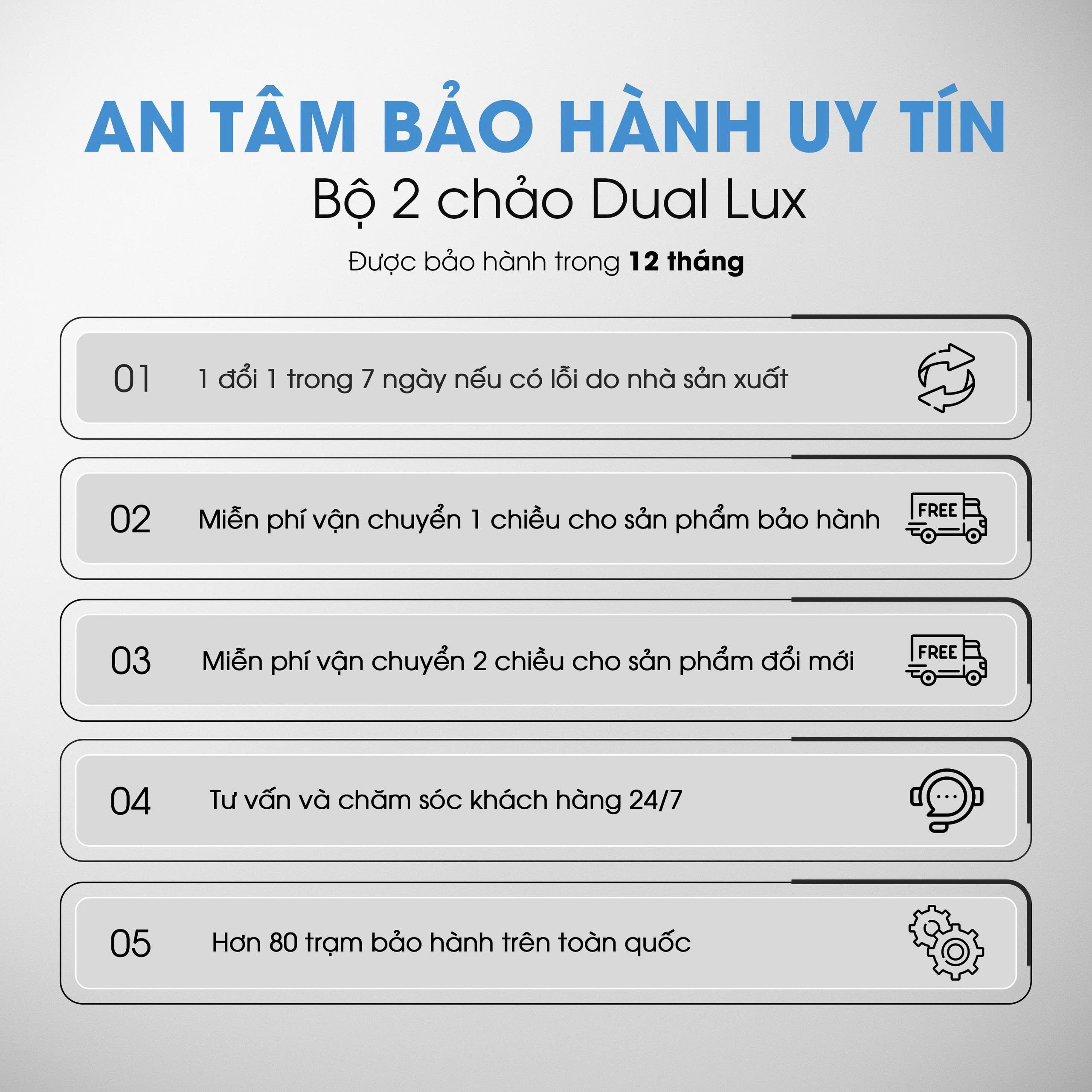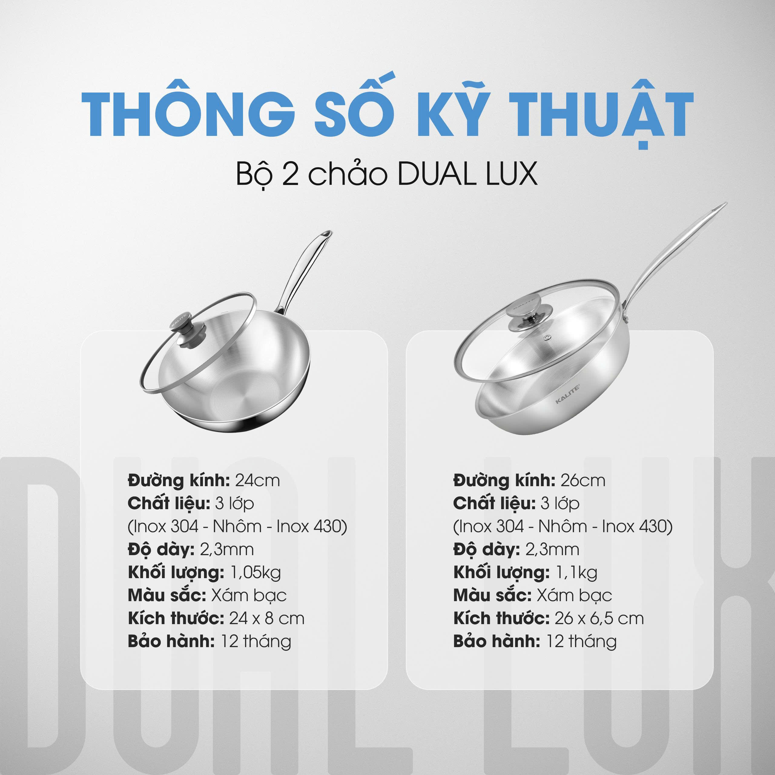 Kalite Dual Lux được chế tác với cấu trúc 3 lớp dày dặn, tối ưu hiệu quả truyền và giữ nhiệt trong suốt quá trình nấu nướng. Lớp Inox 304 bên trong an toàn cho sức khỏe, chống bám dính và dễ vệ sinh. Lớp nhôm nguyên khối ở giữa giúp dẫn nhiệt nhanh, tỏa nhiệt đều, tiết kiệm thời gian và năng lượng. Bên ngoài là lớp Inox 430 có khả năng tương thích với mọi loại bếp, kể cả bếp từ, đồng thời gia tăng độ bền và sáng bóng cho chảo. Nhờ cấu trúc này, Kalite Dual Lux không chỉ mang lại hiệu suất nấu nướng vượt trội mà còn duy trì vẻ đẹp sang trọng theo thời gian.