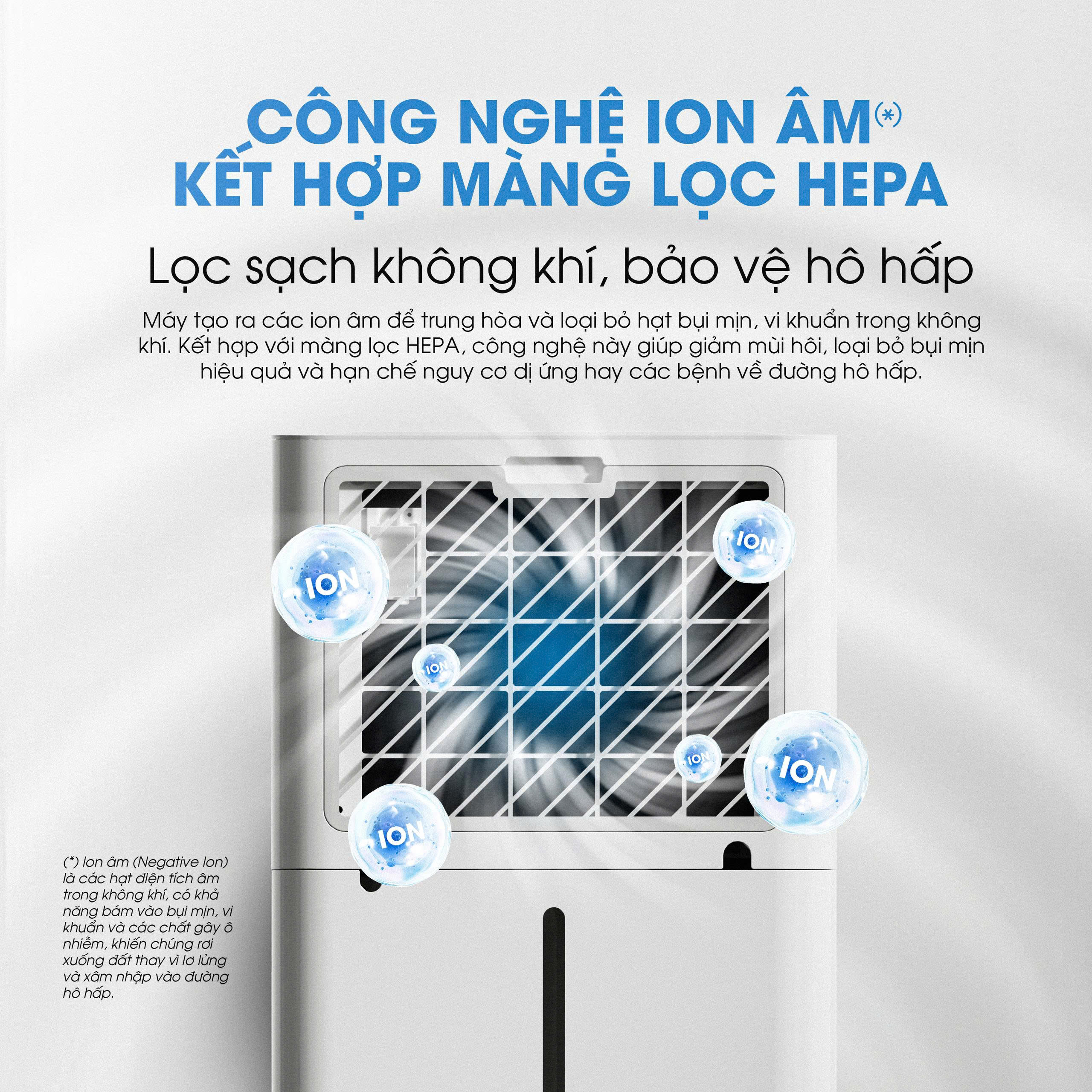 – Công nghệ ion âm & màng lọc HEPA giúp làm sạch không khí tối ưu
