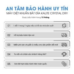 Máy diệt khuẩn bát đĩa Kalite Crystal Dry là giải pháp giúp bát đĩa luôn khô ráo, sạch khuẩn và sẵn sàng sử dụng sau mỗi lần rửa. Sản phẩm kết hợp sấy nhiệt độ cao cùng tia UV, giúp làm khô nhanh và diệt khuẩn hiệu quả, hạn chế vi khuẩn, nấm mốc có thể phát sinh trong môi trường ẩm. Với thiết kế buồng sấy kín, dung tích lớn và thao tác sử dụng đơn giản, Kalite Crystal Dry không chỉ giúp bảo quản bát đĩa sạch sẽ mà còn mang lại sự an tâm cho sức khỏe của cả gia đình trong mỗi bữa ăn.