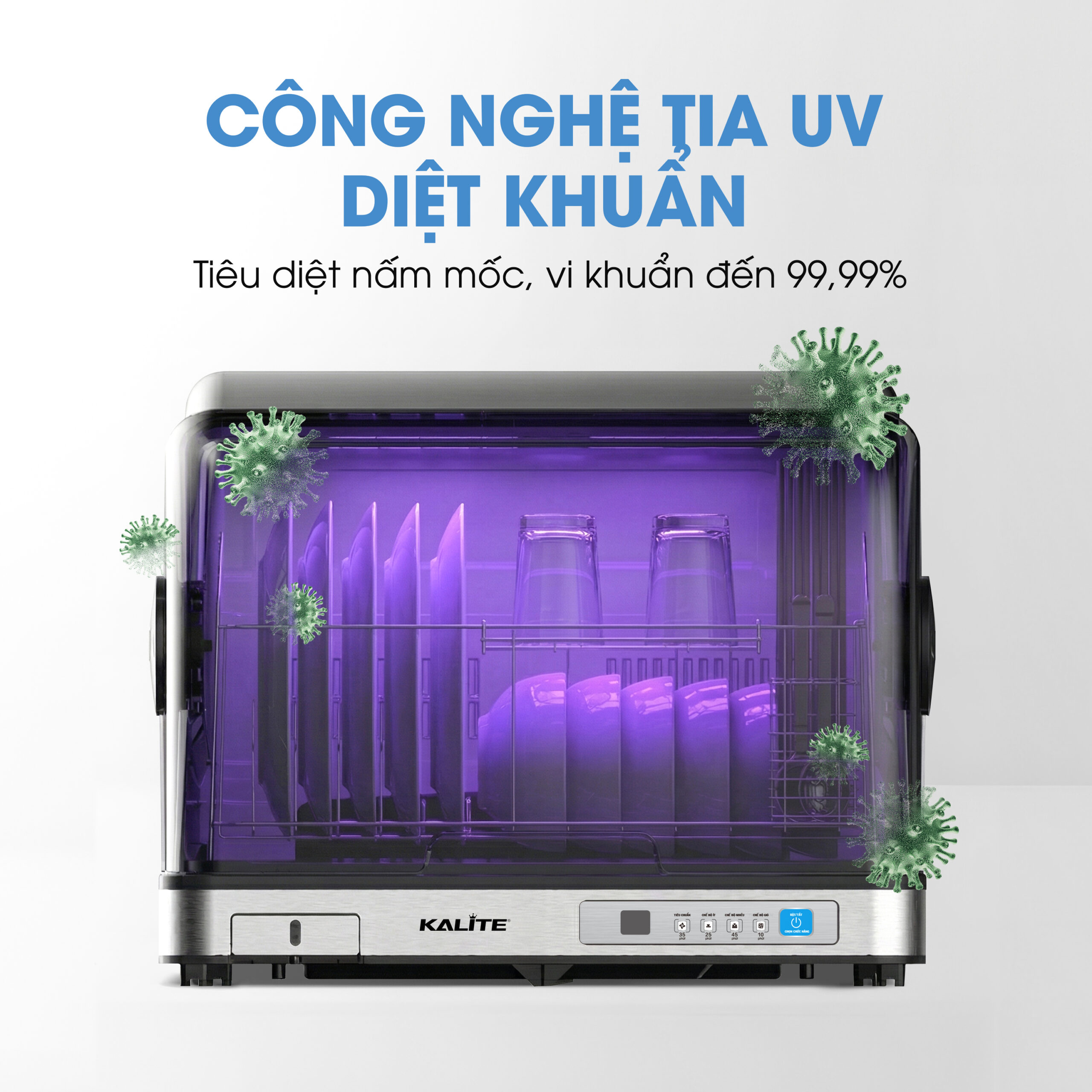 Máy diệt khuẩn bát đĩa Kalite Crystal Dry được tích hợp công nghệ tia UV giúp khử khuẩn và hạn chế vi khuẩn còn sót lại trên bát đĩa sau khi rửa. Khi kết hợp cùng quá trình sấy nhiệt, bát đĩa không chỉ nhanh khô mà còn được làm sạch hiệu quả trước khi sử dụng.