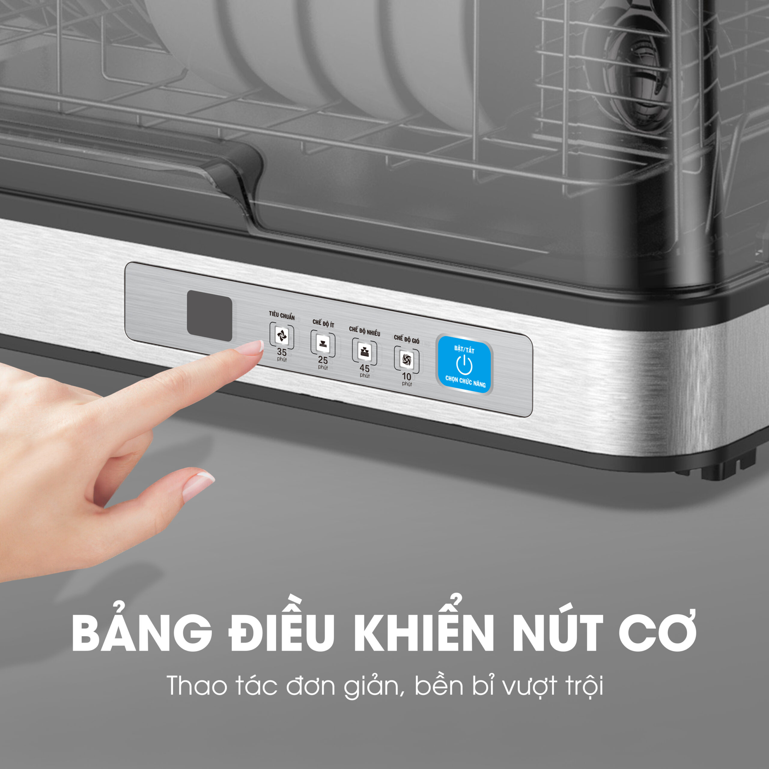 Kalite Crystal Dry trang bị bảng điều khiển nút bấm cơ trực quan, giúp người dùng dễ dàng lựa chọn chế độ sấy chỉ với một thao tác đơn giản. Thiết kế nút bấm nhạy, dễ sử dụng cho mọi thành viên trong gia đình, đồng thời đảm bảo độ bền cao và vận hành ổn định trong quá trình sử dụng.