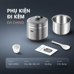 KALITE KPC5001 đi kèm đầy đủ phụ kiện bao gồm muỗng, cốc đong, dây nguồn và sách hướng dẫn sử dụng. Thân nồi bằng kim loại và gioăng cao su tháo rời giúp việc vệ sinh trở nên đơn giản và nhanh chóng hơn bao giờ hết.