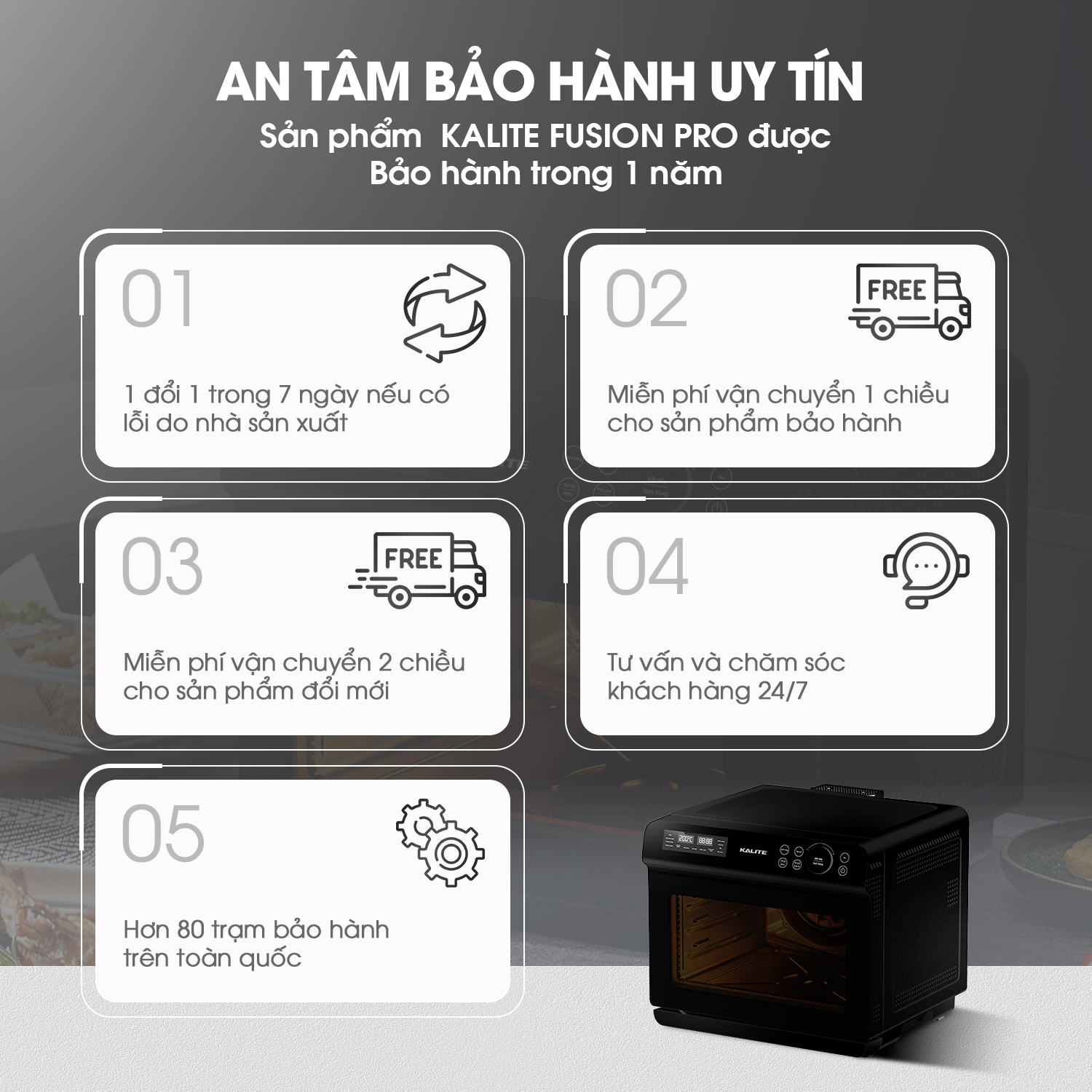Khi sở hữu Kalite Steam Fusion Pro, bạn sẽ nhận được trọn bộ phụ kiện hỗ trợ nấu nướng đa dạng và tiện ích, giúp chế biến nhiều món ăn ngon, an toàn và nhanh chóng.