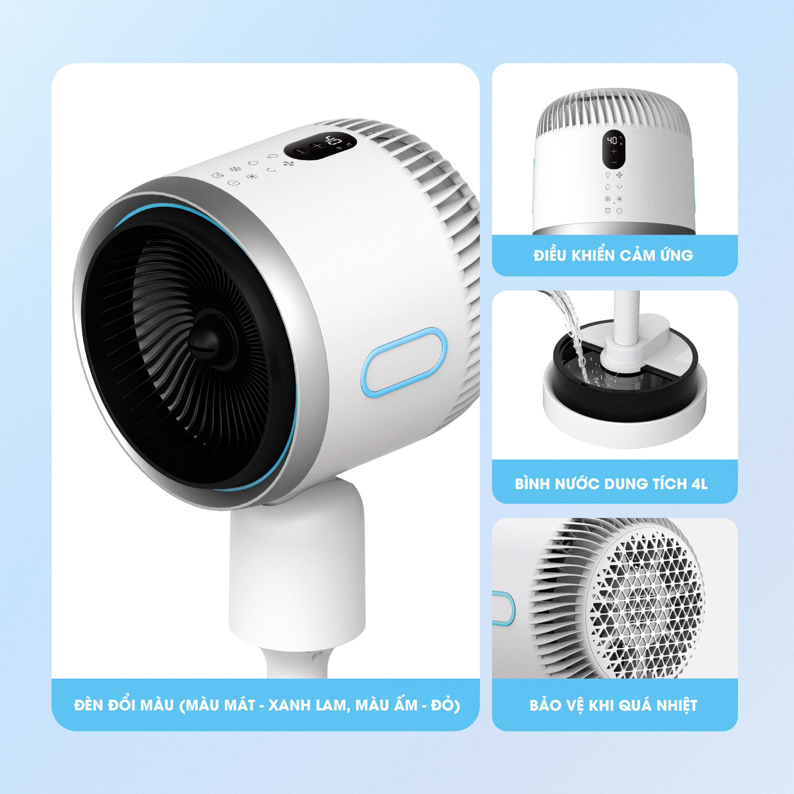 • 4 trong 1: Làm mát – Sưởi ấm – Phun sương – Diệt khuẩn UV